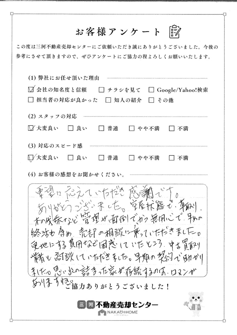更地にする費用など困惑していたところ、中古買取り業者と商談していただきました。